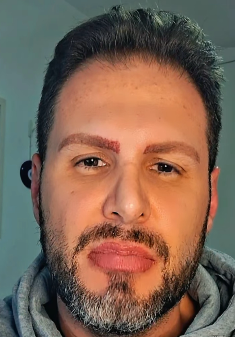 A hialoronidase foi aplicada nos lábios de Bernardo para reverter um preenchimento labial desastroso realizado por outro profissional.