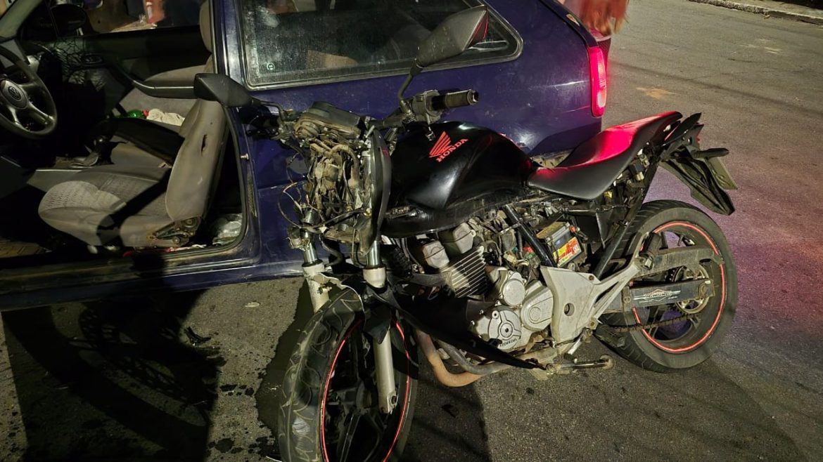 Uma colisão foi registrada no inicio da madrugada desta sequnda-feira (19), envolvendo um carro de passeio e uma moto.